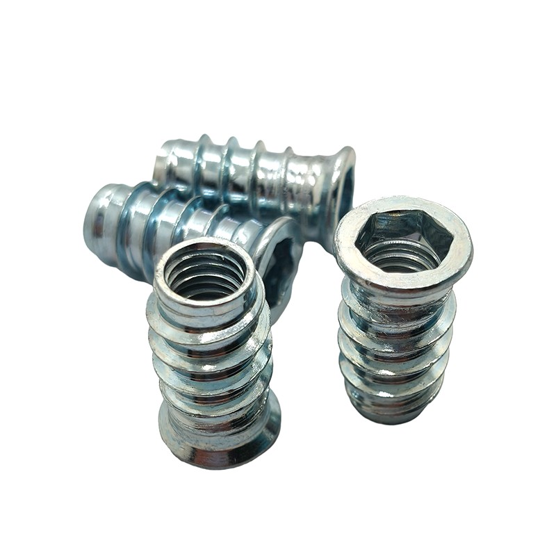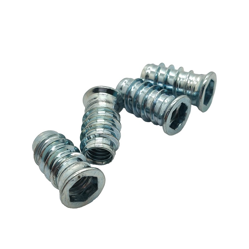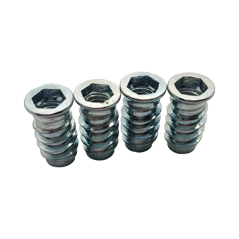 Nuestra tuerca de inserción con rosca hexagonal para muebles de madera tiene una cabeza redondeada con un casquillo hexagonal interno, diseñada para usarse con una llave Allen para apretar y quitar fácilmente. La sección de tornillo incorpora roscas tanto internas como externas. Al ofrecer un excelente rendimiento de sujeción, nuestro producto se ancla de forma segura a sus muebles de madera. La instalación requiere solo una llave Allen para insertarlo o atornillarlo rápidamente en los componentes de conexión. Cuando se combinan con pernos, mantienen una conexión estable en diversas condiciones de trabajo y resisten el aflojamiento incluso cuando se someten a fuerzas externas como vibraciones o impactos. Las tuercas de inserción con rosca de tornillo hexagonal se utilizan ampliamente en la fabricación de muebles; se pueden preincrustar en los paneles, lo que garantiza conexiones fuertes y estéticamente agradables entre los paneles y, al mismo tiempo, facilita el desmontaje y el mantenimiento futuros.