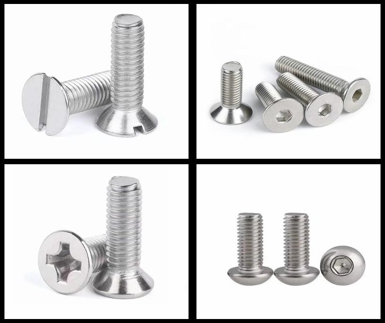 Clasificado por forma, los tornillos hexagonales: los tornillos hexagonales de la cabeza son uno de los tipos de tornillos más utilizados. Sus cabezas son hexagonales, lo cual es conveniente para apretar y aflojar con una llave. Los estándares comunes son DIN933 e ISO4017. Tornillos de precisión de acero inoxidable de la cabeza redonda: la cabeza del tornillo de la cabeza redonda es redonda, y las ranuras son enchufes hexagonales y Torx (zócalo hexalobular). Es adecuado para ocasiones con altos requisitos de superficie, como muebles y equipos electrónicos. Los estándares comunes son ISO7380-1 e ISO7380-2. Tornillos de precisión de acero inoxidable de Counterunk: la cabeza del tornillo de antecedentes está plana y se puede incrustar en el material a conectarse, de modo que la superficie permanece plana. A menudo se usa en productos de madera, interiores automotrices y productos de muebles. Los estándares comunes incluyen DIN7991, DIN965, ISO14581, ISO14582. Tornillo de acero inoxidable para la cabeza de la bandeja: su cabeza está redondeada y en forma de disco, y las ranuras son Phillips (empotradas cruzadas), Pozi, ranura, enchufe cuadrado y enchufe hexágono. Se usa comúnmente en equipos electrónicos, fabricación de maquinaria y fabricación de muebles. Los estándares comunes son DIN7985, ISO14583, ISO1580.